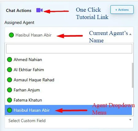 - Allows selection of a new agent via the Agent Dropdown Menu.
