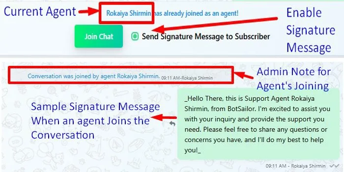 This guide explains how agent assignment works, how to join a chat, what happens to previously joined agents, and how to customize the signature message that welcomes users.